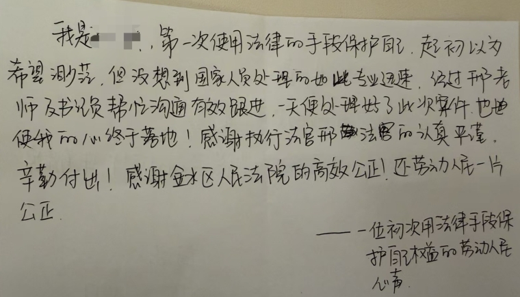 当场履行!法院干警收到当事人温暖手写信
