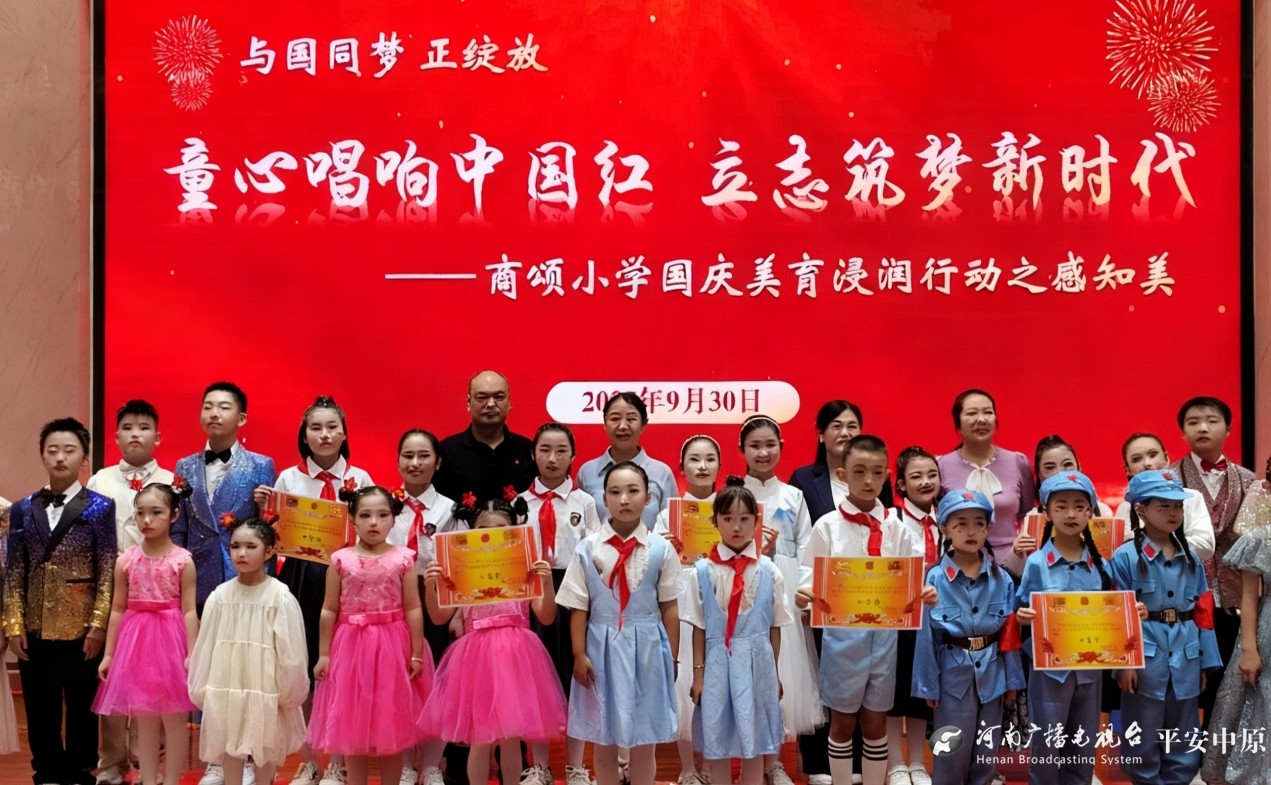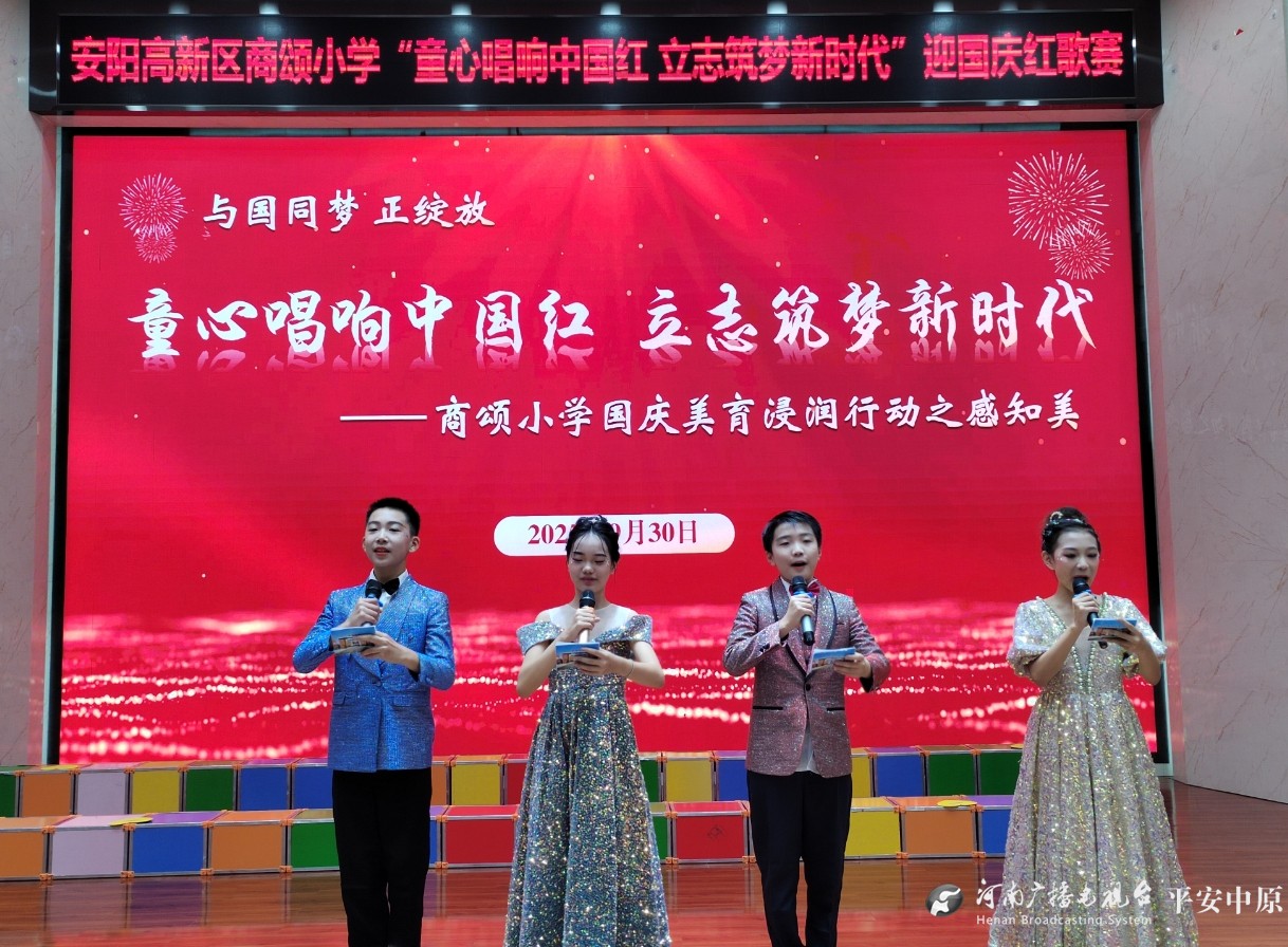 秋风送爽,阳光和煦,校园中的梧桐叶渐渐染上暖色,为这场红色主题活动增添了浪漫气息。在中华人民共和国成立76周年之际,商颂小学师生及家长齐聚多功能厅,文峰区教育局党组成员、总督学李卫霞协同相关人员,安阳高新区商颂小学书记、校长王晓艳出席活动,共赏热情洋溢的红歌比赛,礼赞祖国。本次活动特别邀请了150名家长到场参与,家校携手共同为祖国华诞送上祝福。 比赛火热开启!各年级学生换上整齐划一的演出服,轮番登台亮相!一年级《国旗国旗真美丽》,尽显对国旗的纯粹热爱;《中国么么哒》节奏欢快,孩子们挥动旗帜,天真与爱国热情和谐交融!二年级化身“小小共产儿童团员”,《共产儿童团歌》的铿锵与《红星歌》的高昂,重现革命少年壮志。三年级用《我们多么幸福》展现当下美好生活,《红红的太阳》以活泼旋律传递对未来的期许。 中高年级表演更富深情与力量。四年级《采一束鲜花》诉祖国祝福,《红领巾心向党》唱少年担当;五年级《爱的人间》传温暖,《心同此愿》融美好期许于音符。六年级作为“学长代表”,《龙的传人》唱中华血脉豪情,《有我》用激昂歌声诠释“承风骨、有担当”的少年志向,尽显青春锋芒。 比赛高潮,老师们盛装登台,合唱《万疆》,悠扬的旋律伴着深情演唱,让师生们沉浸在这份家国情怀与艺术之美交融的氛围里。 这次红歌比赛不仅是一场恢宏的视听盛宴,更是一次生动的爱国主义教育!商颂小学将继续深挖红色文化这座精神宝库,深耕美育沃土,让爱国的种子在学子心田破土萌发,托举其成长为担当民族复兴大任的时代朝阳。