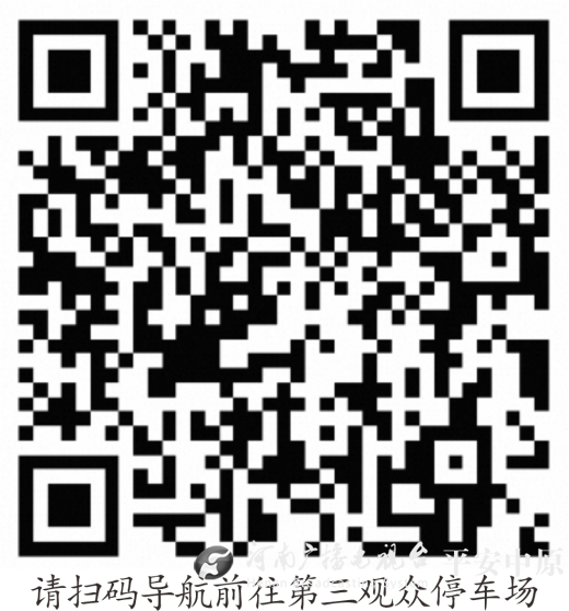 (二)第二观众停车场 设在奥体中心地下停车场,约可停放小型车2000台。观众车辆经西四环地面层(或长椿南路)——博体路——进奥体中心南门——按照管理人员指挥进入地下停车场停放;退场时,车辆可经奥体中心西、北、南三个地下停车场出口驶出(建议从西门和南门驶出,驶出后可驶入西四环高架向南、北方向驶离活动现场)。请扫描下方二维码导航前往停车场。