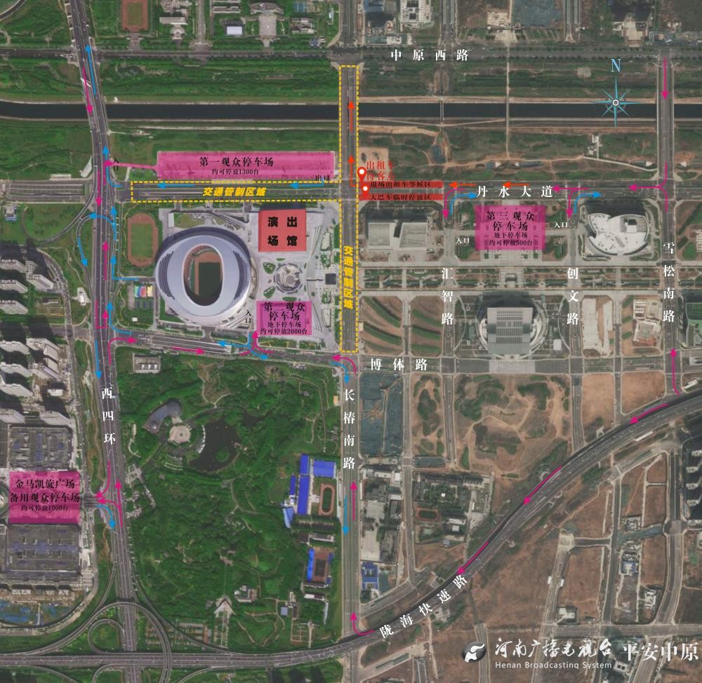 郑州交警发布出行提示 ,2025岳云鹏《非要唱》巡回演唱会—郑州站将于10月11日(周六)、12日(周日)每天19:00在郑州奥林匹克体育中心体育馆举行演唱会期间奥体中心周边路段交通流量巨大为保障您的出行畅通郑州交警特发布以下出行提示 一、临时交通限制措施及时间 为确保观众安全、顺利进退场,防止因人车混行引发道路交通事故,10月11日(周六)、12日(周日)每天的15:30至23:30对以下路段实施临时交通限制措施: (一)长椿南路(中原西路至博体路段双向),禁止各类机动车和非机动车通行(工作车辆除外)。 (二)丹水大道(西四环至长椿南路段双向),禁止各类机动车和非机动车通行(工作车辆除外)。根据奥体中心活动现场交通流量,视情将丹水大道限制通行路段梯次延长至雪松南路以西和凯旋路以西。 二、现场停车场设置及进退场线路 (一)第一观众停车场 设在奥体中心北侧建成停车场,约可停放小型车1300台。观众车辆经陇海西路——西四环——西四环与丹水大道交叉口东北角停车场西入口驶入停车场(车辆进入停车场后,按照管理人员指挥进入指定位置停放);退场时,车辆出停车场东门——经丹水大道向西——西四环向北驶离活动现场。请扫描下方二维码导航前往停车场。