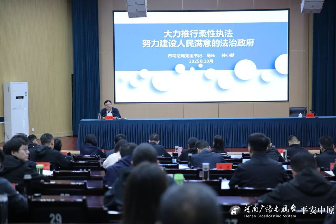 为深入践行习近平法治思想,进一步提升领导干部运用法治思维和法治方式推进工作的能力,提高依法行政、依法履职的水平,10月13日,焦作市在市委党校举办全市领导干部法治政府建设专题讲座,市司法局党组书记、局长孙小献以《大力推行柔性执法 努力建设人民满意的法治政府》为题进行授课。 授课前,孙小献从“三重身份”、“四大平台”、“五大属性”、“六大职能”对司法行政机关现有架构进行了重点阐述,并通过“六个聚焦”重点介绍了司法行政工作内涵。随后,孙小献围绕法治政府建设的作用及重大意义、法治政府建设存在的问题短板以及我市的实践创新等三个方面进行了详细授课。 孙小献指出,近年来,我市主动创新突破,连续三年在全面依法治省考核中获评优秀。“五个精准”普法焦作模式为推动法治传播从粗放式向精细化转变提供了示范。坚持“立”“破”并举,以法治统一助力构建全国统一大市场。人民调解“五百工程”推动全市人民调解工作焕发蓬勃生气。这些先进工作经验先后被《中国法治》《河南工作》《人民调解》等刊发。 孙小献强调,法治政府建设是全面依法治国的重点任务和主体工程,建设法治政府是实现中华民族伟大复兴的必然要求,是实现国家治理现代化的前提。建设法治政府的根本宗旨是建设人民满意的服务型政府为人民服务。法治政府建设面临新形势、新任务、新要求,我们要坚持以习近平法治思想为引领,以人民为中心,坚持依法行政,严格规范公正文明执法。不断创新执法方式,让执法有“力度”更有“温度”。努力建设人民满意的法治政府,为推进社会主义现代化焦作提供强有力的法治保障。