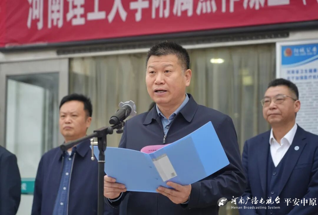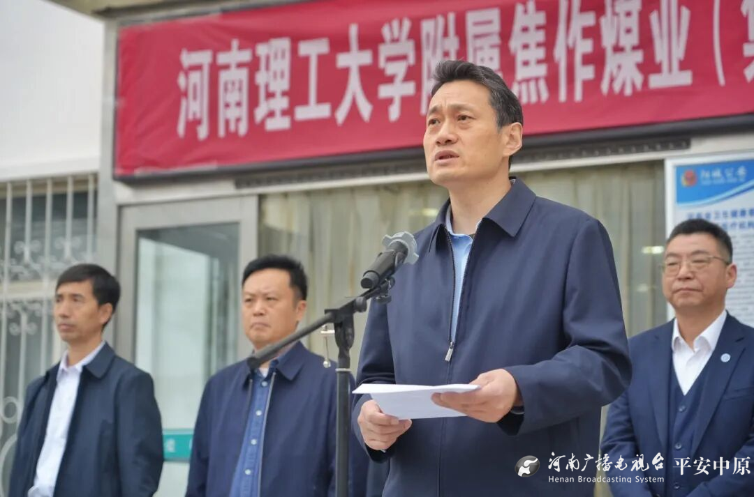 | 10月15日下午,河南理工大学附属焦作煤业(集团)有限责任公司中央医院揭牌仪式在中央医院总院综合病房大楼举行。 河南理工大学党委副书记、校长赵同谦,焦作市政府办公室副主任朱福田,焦作市卫健委党组书记、主任冯小亮,焦煤集团党委书记、董事长皮大峰,河南理工大学校长办公室主任戎涛,河南理工大学医学院党委书记张向锋,河南理工大学医学院院长王振辉,中央医院党委书记、董事长马好斌,院长范波胜及领导班子成员,职能科室负责人,医院职工代表参加了此次揭牌。揭牌仪式由范波胜主持。 赵同谦、朱福田,冯小亮和皮大峰共同为“河南理工大学附属焦作煤业(集团)有限责任公司中央医院”揭牌。 王振辉在致辞中表示,焦煤中央医院在区域医疗体系中发挥着重要示范作用,特别是在急危重症救治、矿山职业病防治以及公共卫生保障等方面形成了鲜明特色,医院丰富的临床病例与实践环境,将成为培养高素质医学人才的“第二课堂”。医学院将以此为契机,持续深化校院合作,积极探索医学教育创新模式,推动科研成果转化应用,为推动焦作乃至河南省卫生健康事业高质量发展贡献更多智慧和力量。 冯小亮在讲话中表示,此次医校协同是落实政策、深化医改、满足群众需求的重要举措,为医教融合与人才培养开辟新路径。焦煤中央医院作为三级综合医院,历史悠久、实力雄厚;河南理工大学底蕴深厚、科研人才优势突出,双方携手属强强联合,将产生 “1+1>2” 效应,为焦作卫生健康事业注入活力。希望以此次揭牌为新起点,探索医学教育改革新路径,协同创新培养高素质医学人才,为健康焦作建设贡献力量、造福群众。 马好斌表示,焦煤中央医院作为一家有着深厚历史积淀和良好口碑的医院,多年来始终坚守医者初心,为保障职工群众和社会公众健康作出了积极贡献。此次合作挂牌,双方将共享资源、优势互补,共同打造集"医疗、教学、科研"三位一体的高水平医学平台。在双方共同努力下,河南理工大学附属焦煤中央医院一定能够成为医教研协同发展的典范,为“基因红”“党徽金”“廉洁白”“长青绿”“魅力橙”的五彩中央医院添砖加瓦、增光添彩,为保障人民群众的健康福祉作出更大贡献。 揭牌仪式后,参加仪式的领导先后参观了中央医院院史馆与骨组织移植与再生医学转化中心,深入了解了医院的历史底蕴与特色科研实力。(焦煤中央医院) 责任编辑|潘姝敏 初审|孟宪超 审核|杨婉嘉 统筹|张一斐