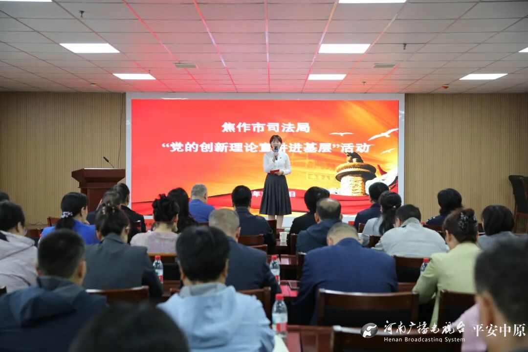 为持续推动党的创新理论在基层落地生根、开花结果,近日,焦作市司法局“党的创新理论宣讲进基层”活动走进高新区李万街道。焦作市司法局党组书记、局长孙小献,李万街道办事处主任鲁来祥等领导出席活动,相关局领导和局二级机构负责人参加活动。 活动邀请全市司法行政系统的五位杰出代表,通过一个个真实案例、一段段生动故事,让抽象的法治理念变得可感可触,勾勒出新时代基层治理的生动图景。宣讲过程中,他们时而以案说法,时而以情动人,既有理论高度,又有实践温度,现场观众全神贯注聆听,掌声此起彼伏。
