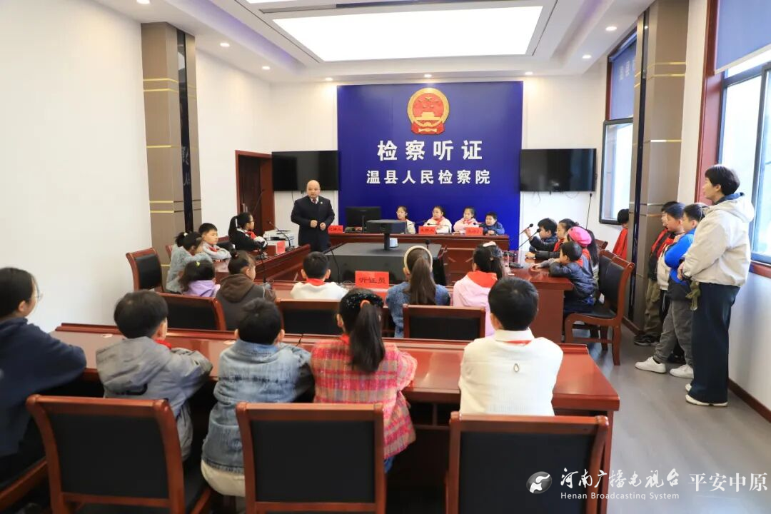 10月26日,温县岳村街道慈胜社区红领巾志愿先锋团队的30余名青少年,在社区书记孙亚利的带领下,走进温县人民检察院,开启了一场集法治教育与司法体验于一体的法治研学之旅,让庄严的司法机关和丰富的法律知识变得可感可触。 在温县检察院办公室主任韦宇的引导下,孩子们怀着敬畏之心踏入检察大楼。大厅内的国徽瞬间吸引了大家的目光,韦宇借此开篇:“国徽代表着检察机关的尊严,国徽下面的’为人民服务‘是每一个检察人员的初心使命,检察机关是用法律维护公平正义的地方。”在大厅介绍检察院工作业绩和特色品牌的过程中,韦宇生动讲解了检察机关的法律监督职能,以及与公安、法院的工作衔接关系,解开了孩子们心中“检察院到底做什么?”的疑惑。 随后,孩子们参观了致力于未成年人健康成长的“红姐组工作站”、检察官办案区、听证室、图书室、会议室等功能区域。 模拟检察听证体验环节,在检察官的指导下,红领巾志愿者们分别扮演检察听证主持人、承办人、人大代表、人民监督员等角色,围绕一起涉及未成年人的盗窃案件展开模拟听证会。“现在宣布检察听证会开始!”扮演主持人的同学声音洪亮,“承办人”清晰陈述事实并严谨发问,沉浸式的体验让孩子们真切感受到法律的威严与检察听证的庄重。 在职工书屋,韦宇结合《未成年人保护法》《预防未成年人犯罪法》的相关内容,用校园欺凌、网络保护等贴近青少年生活的典型案例,深入浅出地剖析了不良行为的危害后果。“如果遇到陌生人威胁,一定要第一时间告诉家长和老师,也可以拨打12309 检察服务热线求助。”检察官的叮嘱让孩子们纷纷点头记下。 “走进来的那一刻,我觉得特别神圣。”参与角色扮演的四年级学生马子烁难掩激动,“我明白了法律不是冰冷的条文,而是保护我们成长的铠甲。”另一位五年级学生郑依可说:“以后我要做家庭和学校的法治宣传员,让更多人懂法守法。” 慈胜社区负责人表示,此次活动是社区“红领巾法治课堂” 的重要组成部分,通过“实地参观+情景体验”的形式,将抽象的法律知识转化为具象的实践认知。温县检察院表示将持续深化检社合作,为青少年提供更多法治实践平台,让尊法、学法、守法、用法的种子在孩子们心中生根发芽。(通讯员 岳欢)