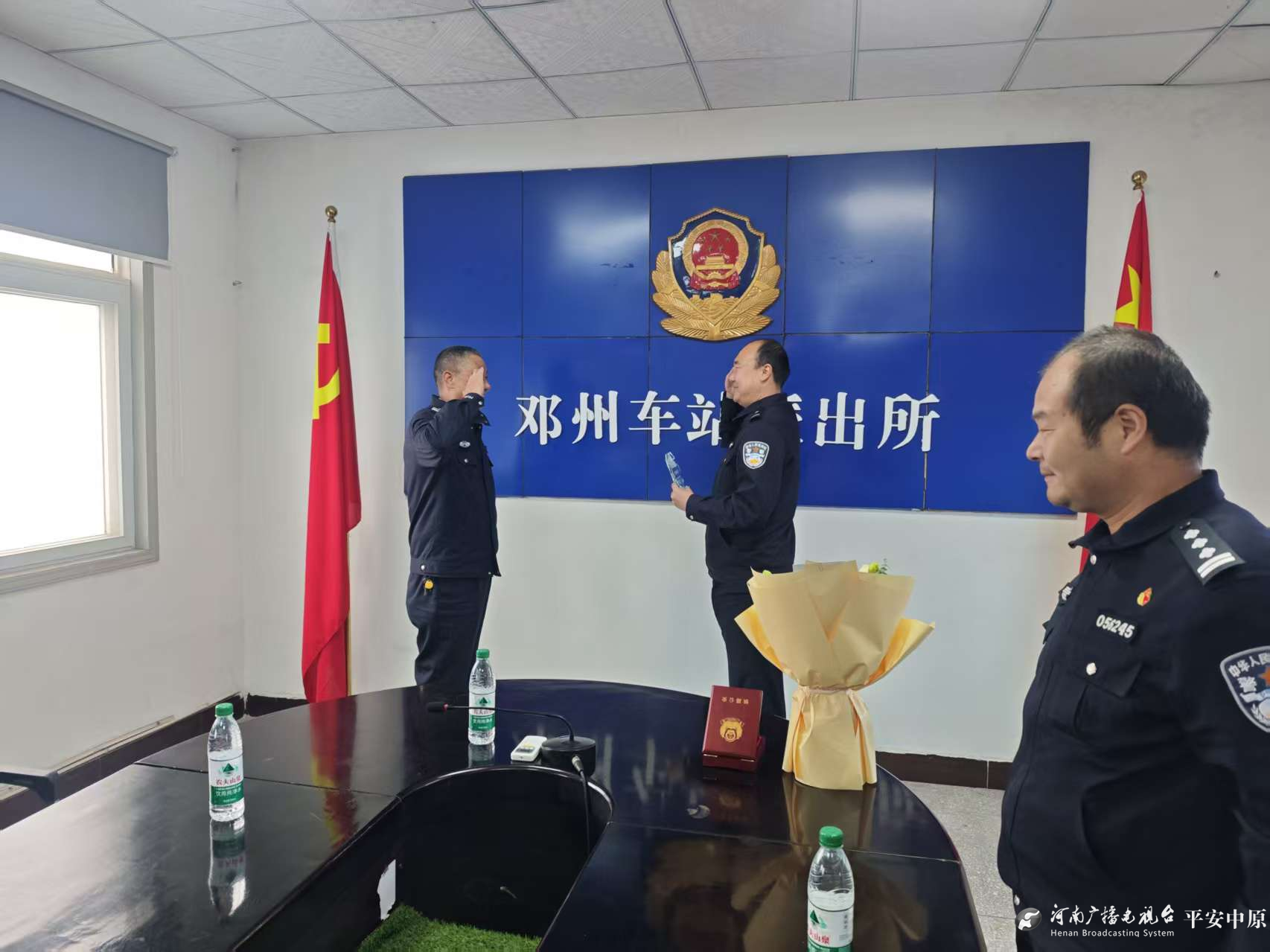 | 深秋时节,温情更胜寒意。近日,邓州站派出所会议室里情意浓浓、掌声雷动,一场为从警四十一载的吴金亮同志举行的光荣退休仪式在此间温情上演。邓州站派出所全体干警及亲属代表齐聚一堂,共同见证这一荣耀时刻,以此向老同志致以最崇高的敬意。 仪式现场:荣耀时刻,温情满满 仪式上,冯凯文所长回顾了吴金亮的从警生涯,称赞他作为派出所发展的亲历者与见证人,将青春与智慧奉献给公安事业,无论是站勤服务群众还是线路巡防护航,始终恪尽职守、堪称榜样。 大屏幕播放的纪念短片,通过老照片与工作瞬间,再现了他数十年忠诚履职的足迹,汇集了同事们的祝福,令现场动容。 吴金亮同志在退休感言中分享了自己从警生涯的感悟:“派出所就是我的家,各位就是我的家人。虽然我退休了,但我的心永远在这里。希望大家继续守护好这一方的平安!”话语之间,满是对警营的深深眷恋和对战友的殷殷嘱托。 警四十年:平凡岗位,不凡坚守 从警四十一载,吴金亮同志在平凡的岗位上做出了不平凡的贡献。他始终恪尽职守、默默耕耘,无论是作为站勤民警时真情守护、服务群众的点滴付出,还是在线路岗位上风雨无阻、巡防护航的漫长坚守,都彰显了一名人民警察的忠诚与担当。 他的坚守不仅守护了旅客的平安出行,也见证了邓州站派出所的发展历程:从最初的简陋站区到如今的现代化车站,吴金亮作为亲历者和见证者,用自己的青春和汗水为站区治安稳定贡献了力量。 薪火相传:忠诚与奉献的接力 吴金亮同志几十年如一日的坚守,诠释了人民警察的初心和使命,年轻一代要接过老同志手中的接力棒,肩负起新时代的职责使命,将忠诚与奉献的精神之火代代相传。 在仪式现场,年轻民警代表郭雪亚为吴金亮同志献上鲜花,并庄严承诺表态:“荣休”不是终点,而是精神的交接与传承。 作为年轻民警,我们接过的,不只是工作岗位,更是老一辈民警那种“在岗一分钟,负责六十秒”的敬业精神,是那种“把旅客当亲人”的为民情怀,是那种溶于血脉的忠诚与信念。请吴师傅放心,请组织放心!我们这一代青年民警,定会稳稳地接过您手中的接力棒,将您的嘱托与期望,化为守护车站平安、服务南来北往旅客的实际行动。我们将以您为榜样,让头顶的警徽,在新征程上继续闪耀着不变的光芒!