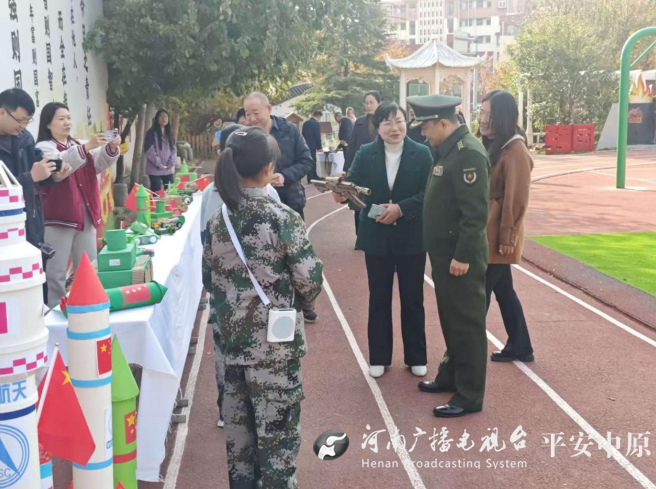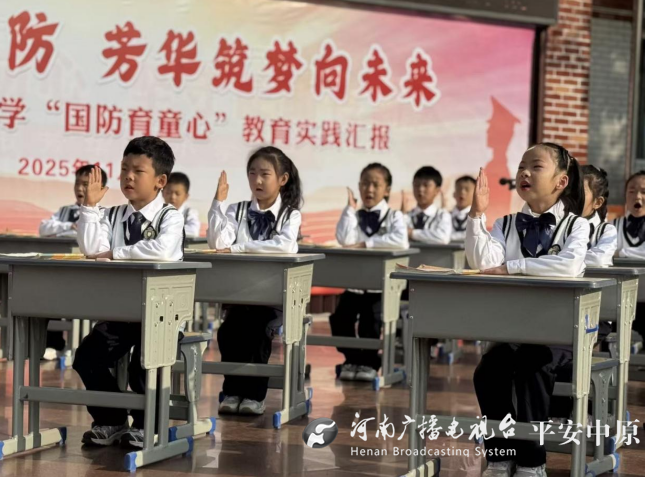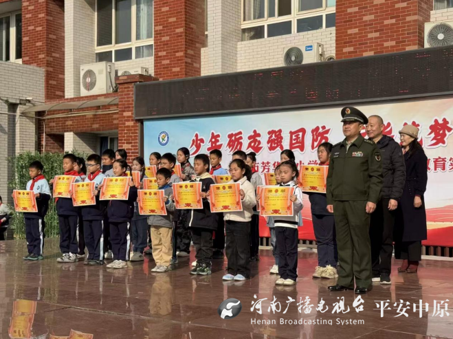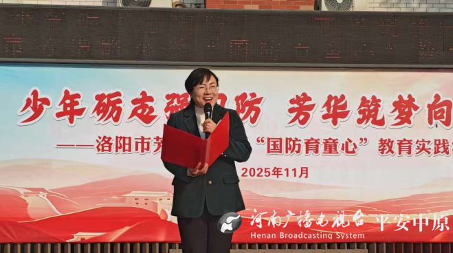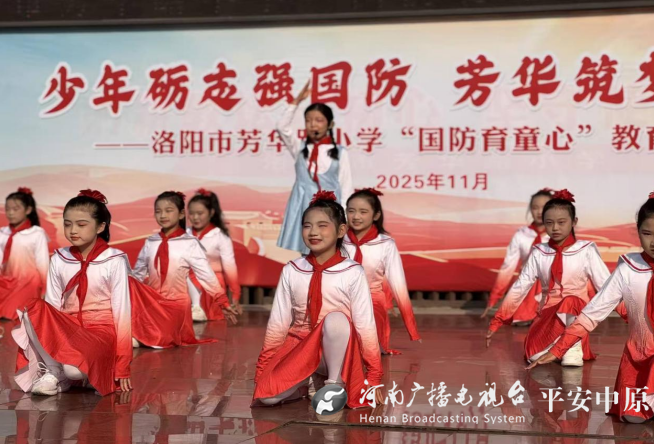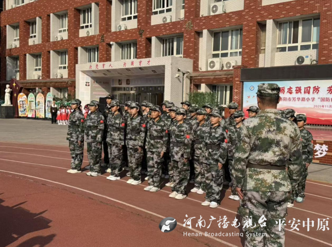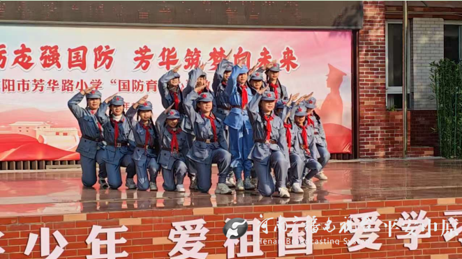 金秋送爽,丹桂飘香。为厚植少年儿童家国情怀,锤炼孩子们的坚韧品质,日前,洛阳市芳华路小学举行了以"少年砺志强国防,芳华筑梦向未来"为主题的"国防育童心"教育实践汇报活动。全校师生与特邀嘉宾共同见证国防教育丰硕成果,共赴一场热血沸腾的爱国之约。 嘉宾齐聚寄厚望 活动现场,来自洛阳市涧西区人民武装部、区退役军人事务局、区教育局、中国船舶第七二五研究所等单位的领导嘉宾,以及媒体记者、教育界同仁应邀出席,共同见证这一重要时刻。涧西区人民武装部相关负责人在致辞中深情寄语,希望同学们铭记国防责任,以少年之姿扛起家国担当。芳华路小学书记、校长赵东杰在讲话中回顾了学校国防教育系列实践活动的点点滴滴,鼓励同学们将爱国情、强国志、报国行融入成长之路,不负时代重托。 实践汇报精彩纷呈 伴随着开场舞《打靶归来》,各类精彩节目轮番登场,将国防精神与少年活力完美融合。 校园情景剧《守护我们共同的家》以生动的演绎诠释了“家国”二字的深刻内涵,让在场观众深刻体会到守护家园的责任与担当;拉歌环节中,各班歌声嘹亮、气势如虹,激昂的旋律里满是少年们的爱国情怀。 一年级小朋友身着统一服装,以稚嫩却坚定的姿态展示军训成果,可爱认真的模样赢得阵阵掌声。六年级学子则以挺拔的身姿、整齐的队列,展现出历经军训磨砺后的飒爽英姿,尽显青春力量。 歌伴舞《少年有志》用昂扬的歌声、有力的舞姿,跳出了新时代少年的国防心跳。故事《守家・护国・传薪火》带领大家重温前辈们的峥嵘岁月,让跨越时空的责任与力量在校园中传递。绳操《兵娃跃动》将运动与国防精神相结合,小小的跳绳跳出了整齐的节奏,更展现了芳华少年的协作精神。