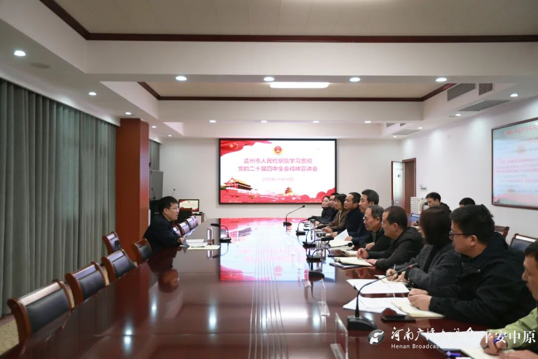 | 11月19日,焦作市检察院党组成员、政治部主任刘伟光到孟州市检察院,宣讲党的二十届四中全会精神,并对今年以来各项业务工作和重点工作完成情况进行督导。孟州市检察院班子成员、中层正职参加调研座谈会。 刘伟光强调,全体检察干警要进一步深刻学习领会党的二十届四中全会精神实质、准确把握要点精髓,落实大检察官研讨班部署和上级检察院相关要求,着力提升法律监督工作质效,锚定“两高四着力”,以高度的政治自觉、法治自觉、检察自觉积极服务经济社会高质量发展。
