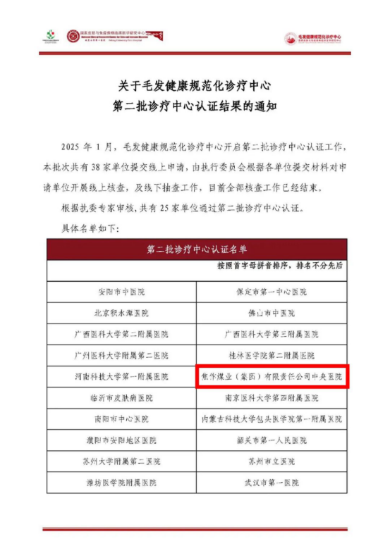 此次授牌,标志着中央医院皮肤科毛发健康诊疗工作迈入规范化、均质化、标准化发展的新阶段。我院将以此为契机,持续深耕毛发健康领域创新发展,充分发挥学术交流与业务协作的纽带作用,依托互联网医院平台,打破各级医疗机构间沟通壁垒,推动实现行业共建、资源共享、发展共赢;通过开展学术研讨、技术交流、专业培训等活动,强化毛发健康知识科普宣传,拓展远程会诊服务范围,为广大患者提供更优质、更规范的诊疗方案,助力焦作地区百姓毛发健康水平稳步提升。(焦煤中央医院) 责任编辑|潘姝敏 初审|孟宪超 审核|杨婉嘉 统筹|张一斐