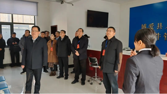 12月17日,博爱县人大常委会主任王咏生带领调研组到博爱县检察院专题调研控告申诉检察工作开展情况,院党组书记、检察长范光明陪同调研。![]() 调研组实地察看了博爱县检察院案件管理大厅、12309检察服务中心、公开听证室等办公办案场所,详细了解相关场所的硬件设施、功能分区、工作流程以及便民利民措施。 范光明围绕“群众来信件件有回复”、信访积案化解、领导包案、公开听证、司法救助等方面,汇报了今年以来县检察院控告申诉检察工作的开展情况、工作亮点、存在的短板弱项及下一步工作打算。