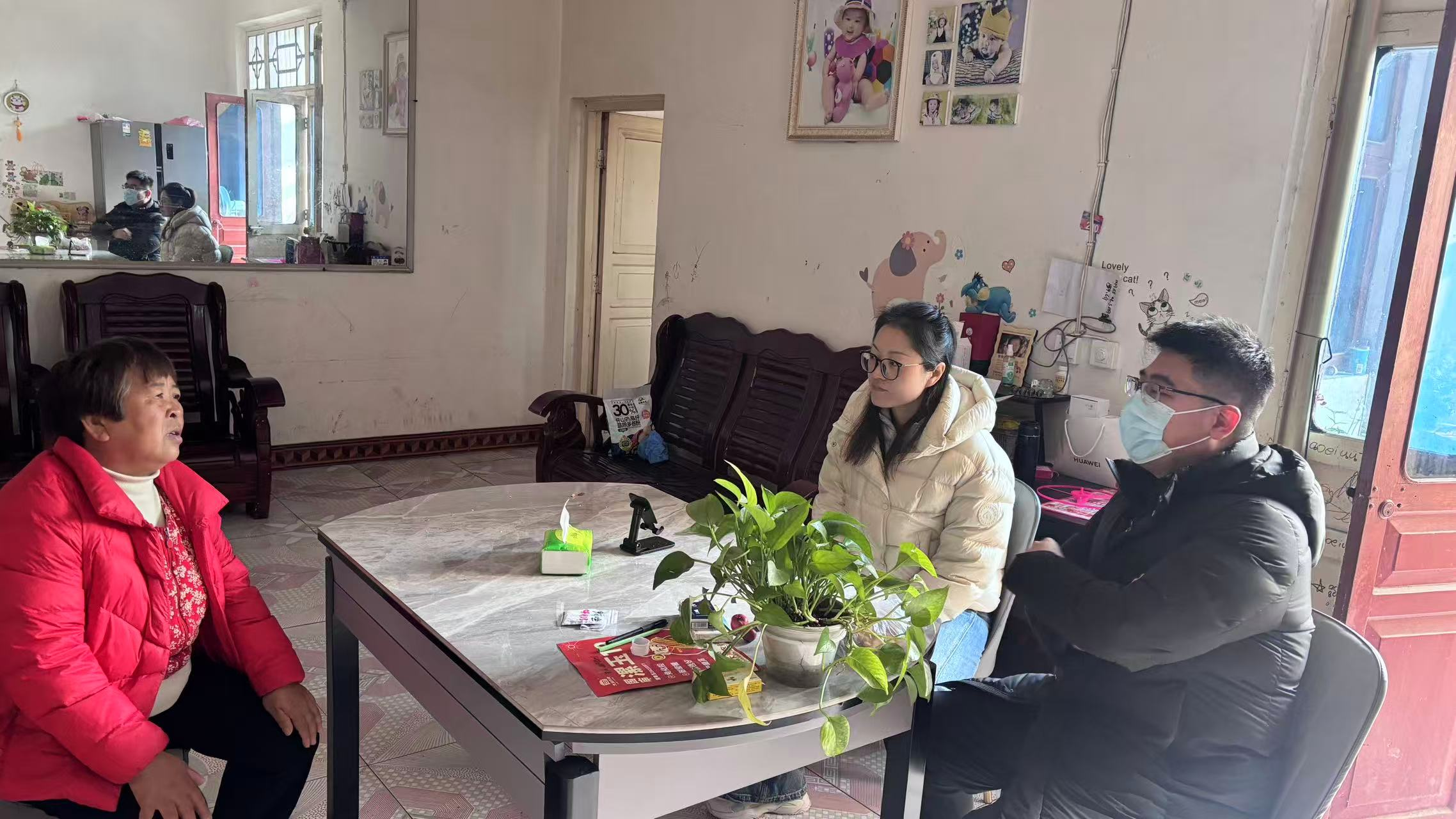 “成大婶,我们来瞧瞧您!”一踏进汤王庙村成代见的院子,机关干部便快步走到群众身边,拉起群众的手嘘寒问暖,伸手摸了摸棉袄袖口,关切询问衣物是否充足,又俯身感受屋内温度,细致查看居住环境。在检查取暖煤炉时,机关干部发现通风管道存在隐患:“这个烟囱接口有点松了,得马上加固,一氧化碳中毒可不是小事,安全第一!”随行的村干部当即找来工具,现场对松动的烟囱接口进行了加固处理,及时消除了安全隐患。