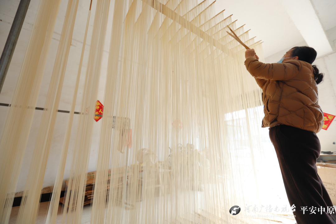 12月17日,驻马店市正阳县陡沟镇陡沟社区冯晨挂面厂内,61岁的冯本丽坐在一个大盆前,双手如飞,细若发丝的面条在她指间灵巧翻绕,动作快得让人眼花缭乱。她的身旁,83岁的老母亲静静站着,不时伸手帮衬一下。这一幕,母女接力,仿佛是陡沟千年挂面技艺无声的传承注脚。 “这个绕面动作要快才能锁住水分。”冯本丽手上不停,语气平静。每天凌晨3点起床,是陡沟做面人雷打不动的节奏。和面、醒面、搓条、盘条、分筷、上架、晾晒、切割……十几道工序,环环相扣,全靠一双手和日积月累的功夫。“这个季节起得更早,差不多两点就得起床,旺季不等人。”说话间,几个人已将一批面条挂上高架,准备拉抻。 陡沟镇陡沟社区,这个有着“挂面村”之名的古老村落,手工空心挂面的历史可追溯至唐朝,曾是进献宫廷的“长寿面”。如今,随着冬日农闲到来,村里又迎来了每年最繁忙的制面季。空气里弥漫着麦香,家家户户的院落、空地上,细如银丝的面条如瀑垂挂,在阳光下,渐渐染上金色,变成一片晃眼的“黄金丝帘”。 这“丝丝空心”的奥秘,藏在每道工序的严谨与速度里。冯本丽演示绕面环节,手腕轻转,面条绕过竹竿,一套动作行云流水,不过三秒。“慢了,水分就锁不住,也形不成均匀的空心。”反复的拉伸、多轮的发酵,让面条内部产生微妙的气孔,最终成就了1毫米左右的面身里那根通透的“空心”,也成就了其软而不烂、韧而不硬的独特口感。 从前,陡沟几乎家家户户以此为生。时代变迁,机械生产普及,但仍有像冯本丽这样的坚守者,固执地守护着传统手艺。“我现在做的都是订单。”她说,如今镇上常年坚持手工做的还有十来户,祖传的手艺成了增收致富的依托。她的客户,有的慕名而来,有的通过抖音、微信下单,小小的挂面顺着网络,香飘四方。 坚守之中,亦有新篇。同镇的周啓莉,祖辈都是做面人。2020年,在镇里引导下,她做出大胆尝试,投资近2000万元,在正阳县先进制造业开发区建起了规模化、标准化的传统挂面生产基地。“陡沟老冯家”等品牌挂面,从此告别单一家庭作坊,走向更广阔的市场。非遗技艺插上产业化翅膀,带动就业,提升产值,成为乡村振兴路上实实在在的产业。 在当地非遗传承人冯先志等人的持续发掘改进下,陡沟空心挂面的品质与知名度不断提升。它不仅是寻常人家的美味,更成为宾馆饭店的走俏食材、宴席上寓意吉祥的佳肴、走亲访友的馈赠佳品。这根“面食一绝”,连接着千年历史,也链接着当下人们对健康、传统美食的追求。 从凌晨三点的坚守,到现代化车间的轰鸣,陡沟的空心挂面,正以其不变的匠心与与时俱进的活力,在乡村振兴的画卷上,勾勒出愈加清晰而悠长的金色线条。(通讯员:李玉荣 余川) 责任编辑|马春丽 初审|葛纯强 审核|杨婉嘉 统筹|张一斐 |