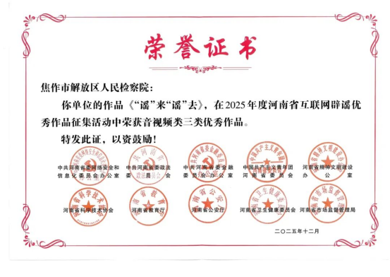 焦作市解放区人民检察院打造的辟谣作品《“谣”来“谣”去》荣获音视频类三类优秀作品。 《“谣”来“谣”去》以拟人化手法讲述“谣言”如何从一句谎话步步升级,借助人们的轻信、猎奇与逐利心理,如病毒般扩散传播。作品通过轻松幽默的剧情与“打怪升级”式的视觉设计,生动揭示谣言背后的动机——金钱、虚荣与流量,并在高潮处以法网收束,由检察官权威普法,传递“谣言止于智者”的核心观念。全片节奏明快,贴近生活,寓教于乐,既有趣味性又不失教育意义,助力营造清朗网络空间,让辟谣更有力,让真相跑赢谣言!(焦作市解放区人民检察院) 责任编辑|潘姝敏 初审|孟宪超 审核|杨婉嘉 统筹|张一斐