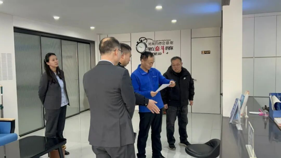 在沁阳市市场监管局政务大厅“焦惠办”服务站点,调研组详细了解站点日常服务内容,听取工作汇报。站点工作人员重点介绍了一起“护企”典型案例:近日,个体工商户宋女士遭遇“年报诈骗”,站点工作人员迅速识别风险,立即联动辖区民警,仅用3分钟成功拦截并追回被骗资金319元,随后现场指导商户完成名下店铺的年报。调研组对此给予充分肯定,强调基层站点不仅要提供常态化服务,更应成为企业身边的“安全前哨”,真正做到“急企所急、办企所需”。
