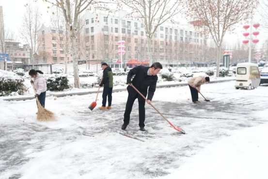| 1月20日清晨,寒潮降雪后,道路积雪结冰,给市民日常出行带来极大不便。为保障道路畅通与群众安全,孟州市检察院以雪为令,迅速响应,检察长带领全体干警开展扫雪除冰行动。