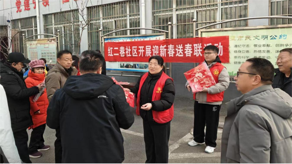 | 为传承中华传统文化,营造温馨祥和的新春氛围,1月26日,鹤壁市山城区长风中路街道红二巷社区开展“浓情腊八送春联”志愿服务活动,为辖区居民免费发放春联,送上满满的新春祝福与冬日暖意。活动现场人头攒动,暖意融融,提前拉开了春节的喜庆序幕。