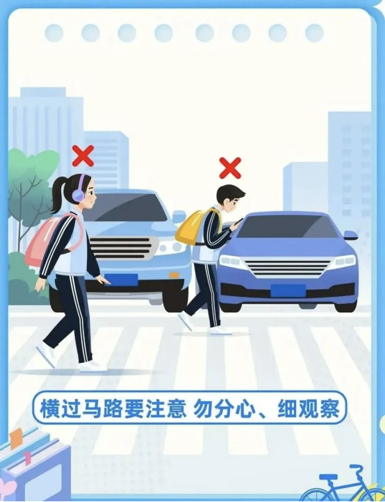 过马路走斑马线 通过斑马线前仔细观察,在确认车辆停车让行并在确保安全的前提下,应快速通过斑马线,切勿沉迷低头玩手机,忽视道路交通安全。
