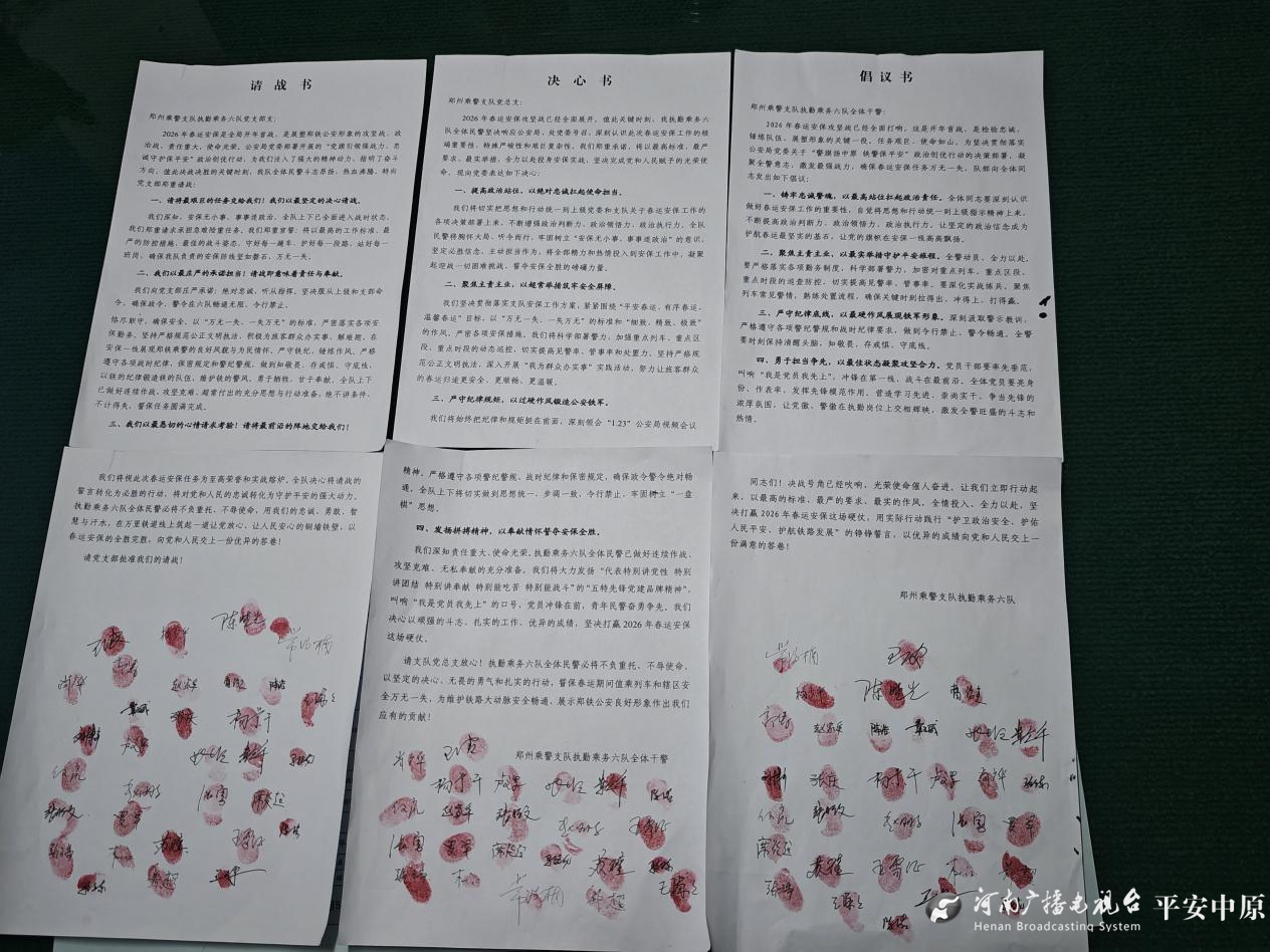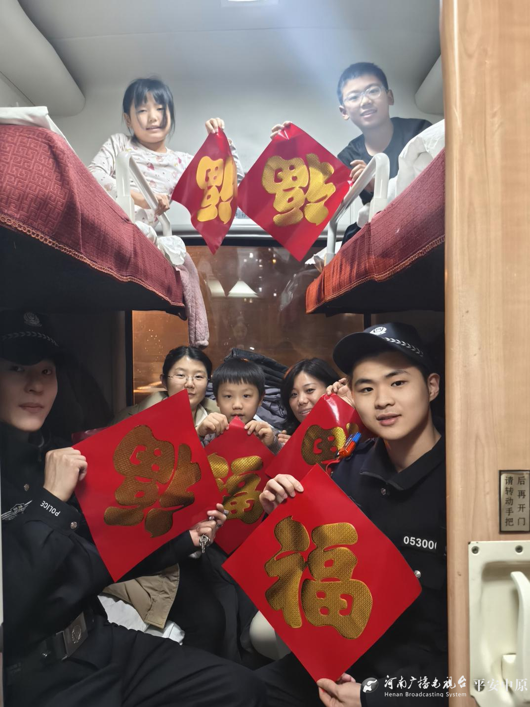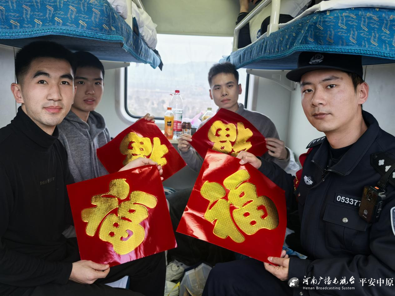 “各位旅客,请将手机、钱包贴身安放,不要对陌生人转账……” 乙巳岁末,K1306次列车京九一组警长杨黎斌的温情提醒,正式进入了2026年春运实战状态。当万千归乡人背起行囊奔赴团圆,郑州乘警支队执勤乘务六队全体干部民警已然坚守一线,以“五特先锋”之姿,护航每一段归乡旅途。 重温连线,坚守使命担当 2023年1月18日,习近平总书记视频连线郑州东站,慰问全体干部职工,对春运期间的调度与维稳提出了殷切嘱托,郑州乘警支队执勤乘务六队利用集中学习时间,重温习总书记视频连线精神,集体对党旗宣誓,为春运奠定了有力的思想基础,恪尽职守,牢守阵地,民警纷纷讨论并发言,表达了对做好2026年春运安保工作的信心与决心。 为打造平安春运、有序春运、温馨春运,强化乘警的责任担当,郑州乘警支队执勤乘务六队全体民警签下安保决心书,这是郑铁乘警的担当,更是刻在骨子里的责任。 福字传情,车厢里的年味与安心 “丙午马年将至,郑铁乘警给大家送福啦!愿这抹红运伴您一路平安,新春喜乐!” 2月1日,由郑州开往北京西的K180次列车上,京快四组警长赵家华的话音刚落,车厢里便响起阵阵掌声。一张张红彤彤的“福”字被递到旅客手中,墨香里裹着的不仅是新春祝福,更有实打实的安全叮嘱:“收好福字,也收好随身财物,防盗防骗不松懈,我们全程都在!” 无独有偶,由西宁站返回的K178次列车的车厢内也开始送福,一枚枚“福”字成为郑铁乘警与旅客心贴心的纽带。乘警将安全提示、法制常识融入送福环节,在欢声笑语中织密安全防护网。列车飞驰,年味在车厢蔓延,这份来自旅途的温暖,让归乡的脚步愈发轻快。 藏蓝坚守,团圆路上的守护与温度 春运启幕,使命在肩!执勤乘务六队闻令而动、擎旗出征,组建五特先锋突击队,以特别讲党性、特别讲团结、特别讲奉献、特别能吃苦、特别能战斗为内核,聚焦春运安保急难险重任务,下沉一线、动中备勤,用铁警担当筑牢列车安全防线,以硬核战力守护万千旅客平安归途!