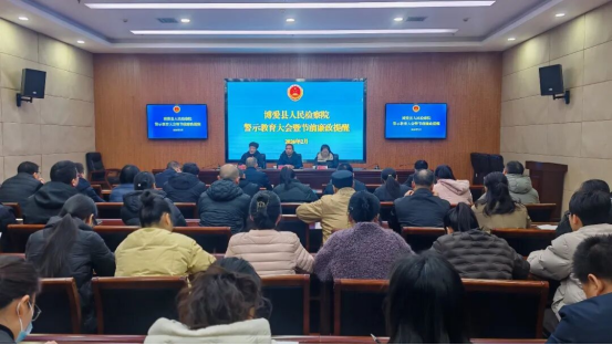 | 为深入贯彻落实中央八项规定精神和全省政法系统警示教育大会精神,加强检察队伍纪律作风建设,近日,博爱县检察院召开警示教育暨节前廉政提醒会,对持续推进违规吃喝专项整治工作进行再部署,县委政法委副书记杨安到会指导并讲话,全体干警参加会议。