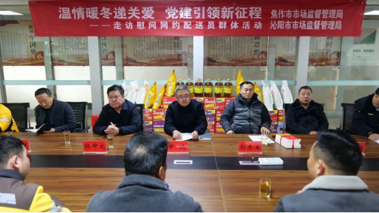 | 数九寒天,真情涌动。近日,“温情暖冬递关爱,党建引领新征程”走访慰问活动在沁阳市美团站点暖心举行。焦作市委社会工作部副部长申远,市市场监管局党组成员、副局长、市外卖配送行业党委副书记孙志友一行深入一线,为奔波在路上的网约配送员送去组织的关怀和新春的祝福。