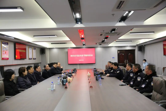 | 新春佳节将至,近日,焦作市司法局党组书记、局长孙小献带领局班子成员组成慰问组,深入焦作监狱、焦南监狱开展春节慰问活动,向坚守在岗位一线的全体干警职工致以新春祝福和诚挚问候。