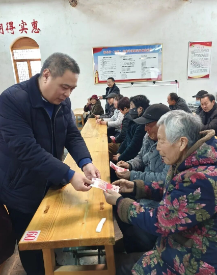 随后,福利金发放环节正式开始。合作社理事长靳光国同志依次为老人发放福利金。一叠叠现金,承载着村集体对老年朋友的深情厚谊;一声声叮嘱、一句句关怀,温暖着每一位老人的心房。领到福利金的老人们,脸上绽放出幸福的笑容,纷纷竖起大拇指,感谢村 “两委” 的贴心关怀。“现在的日子越来越好,村里不仅发展得好,还时刻想着我们老年人,还给我们发福利,真是太幸福了!” 今年82岁的杨大爷手拿福利金,激动地说道。