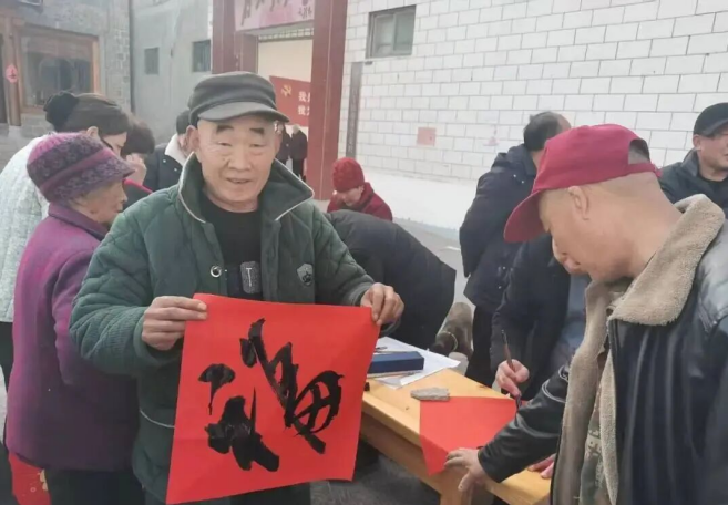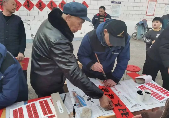 福利金发放结束后,新春送福环节接踵而至。为每位老人送上饱含敬意、情暖桑榆的春联。