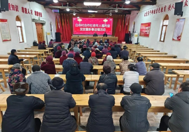 | 岁序更替,华章日新。随着2026丙午马年春节的脚步日益临近,为传承中华优秀传统文化、营造喜庆祥和的节日氛围,2月11日下午,浚县白寺镇白寺村股份经济合作社老年人福利金发放暨新春送福活动在乡村振兴学堂隆重举行。85名80周岁以上老年同志齐聚一堂,共沐暖阳,共迎新春,共享发展硕果。