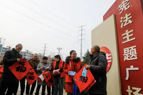 寒假期间,中南财经政法大学武陟籍学子在县法律援助中心开启特殊实践。服务大厅里,她协助接待咨询、整理材料;宪法广场上,她结合案例普及防电信诈骗技巧;乡村社区中,她将印有法治寄语的春联与普法资料送到村民手中。活动累计发放法治春联150余副、宣传资料300余份,用传统文化传递法治声音。 修武县:公园里的“拉家常”式普法