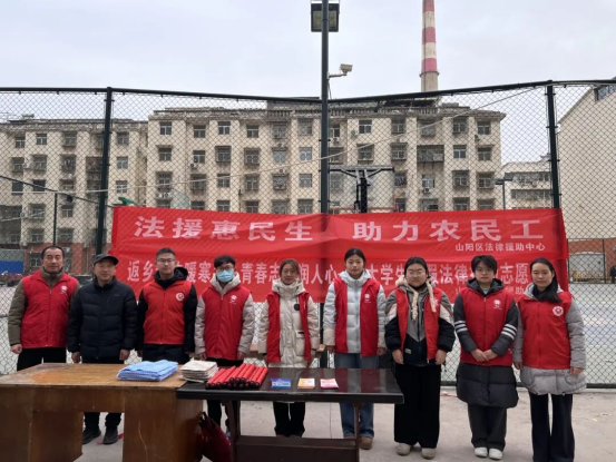 2月11日,解放区法律援助中心组织志愿者走进上白作村农贸市场,设立法律服务摊位。针对货车司机、农民工、商贩及采买居民,精准发放法律援助指南、民法典常识、法治春联等宣传资料100余份,现场解答婚姻家庭、劳务纠纷等法律咨询10余人次。志愿者用乡音普法、以案例释法,让群众在置办年货时把“法”带回家。 山阳区:为农民工撑起法治“保护伞”