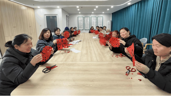 活动现场气氛温馨热烈,志愿者首先向大家介绍了剪纸的历史与文化内涵,随后细致讲解了基本折法、剪法和图案设计技巧。在志愿者的耐心指导下,大家纷纷动手,红纸在手中折叠、描绘、剪刻,大家时而细语交流,时而互相帮助。不一会儿,一幅幅栩栩如生的窗花逐渐呈现——有寓意吉祥的福字、灵动的生肖,也有精美的花卉图案,每一件作品都凝聚着居民的巧思与喜悦。 此次活动不仅让居民在动手实践中感受到剪纸艺术的魅力,也为大家提供了交流互动的平台,增进了邻里情感。下一步,奔六巷社区将继续围绕居民需求,组织开展形式多样、内容丰富的文化实践活动,进一步充实居民精神文化生活,切实提升大家的归属感、幸福感与社区凝聚力。(通讯员:亓嘉正) 责任编辑|原媛 初审|葛纯强 审核|杨婉嘉 统筹|张一斐