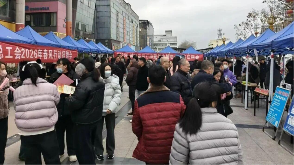| 为全力保障春节后企业复工复产用工需求,促进各类重点群体高质量充分就业,2月25日,由鹤壁市山城区人力资源和社会保障局主办的2026年春风行动暨就业援助季专场招聘会在地王广场举行。