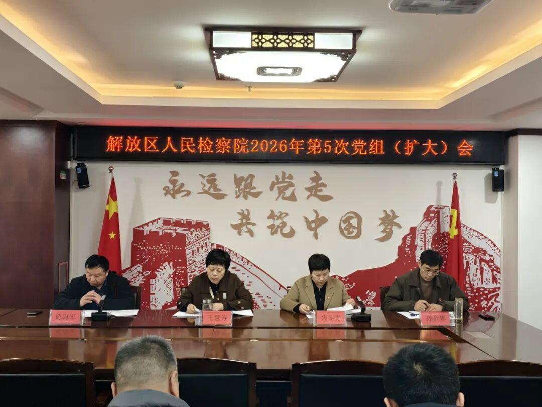 | 3月5日,焦作市解放区人民检察院召开党组扩大会议,研究部署树立和践行正确政绩观学习教育,引导全体干警以正确政绩观引领检察履职实践,以实干担当护航区域高质量发展。党组书记、检察长王慧芳主持会议并讲话,班子成员、各部门负责人参会。