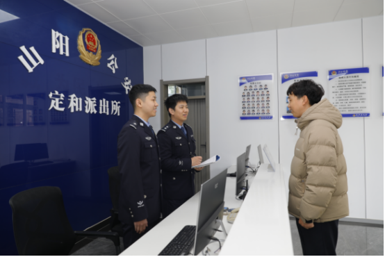 “您好,这是您的证件,请收好。”在定和派出所一窗通办窗口,民警正在给群众发放户口本。定和派出所不断推动服务理念变革,简化办事流程、缩短办理时间、开通绿色通道,打通服务群众的“最后一公里”。同时派出所将政务服务延伸到警务室,依托“焦作公安云警务”平台,实现流动人口自助申报“一企一码”、加油站登记“一站一码”、网约房登记“一房一码”、旅馆特行证“全网通办”等,身份证补办、户口本打印、居住证快速核发等业务实现就近办理,服务从“最后一公里”迈向“零距离”。 “接待群众零距离、治理方式点对点、警务效能大提升”,这是民警们总结出来的警务工作法。在定和派出所,民警们建立“民情台账”,记录好每件经办和需要办理的事,确保“事事有回应、件件有着落”。针对辖区小微商户多,以优化营商环境促发展,畅通群众服务渠道,依托于线上与群众建立的各个“微警务群”,打造“掌上解忧平台”;线下开展“脚步延伸”走访活动,深入到社区、企业、街道,面对面解决群众急难愁盼问题。