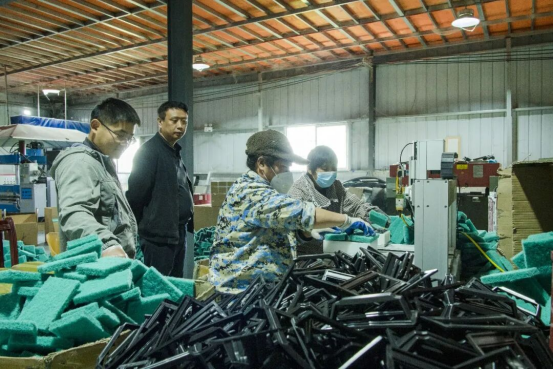 在打包区,54岁的李小朵正麻利地将一箱箱成品打包封箱,动作流畅得仿佛在跳一支无声的舞蹈。汗水微微浸湿了她的额角,但脸上却洋溢着满足的笑容。“最忙的时候,我一天能打包将近2000件快递呢!”她一边说着,一边又利落地封好一个箱子。对于她来说,这份在家门口的工作,不仅意味着每月3000元左右的稳定收入,更是一份久违的踏实感。“年纪大了,出去找工作没人要,没想到在家门口的厂子里,还能挣到钱,还能发挥余热。”