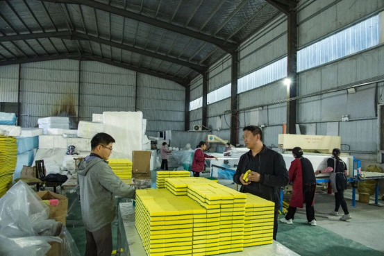 据了解,驻马店嘉凯塑料制品有限公司是清源街道党工委、办事处2023年招商引进的企业,主要生产密胺海绵、隔热棉、汽车记忆棉头枕等产品,年产值约1200万元。“我们主要通过拼多多、淘宝、抖音这些平台线上销售,高峰期有产品登上过平台月销榜第一。线上一年能做七八百万,线下约三百万,客户基本都在省外,产品高铁、家用轿车都能用。”公司负责人樊东起告诉笔者。 正阳县清源街道粱楼村党支部书记王百岁表示,“企业租用的是村集体厂房,每年为村集体增加了一笔稳定收入,也把村里留守人员的空闲时间变成了有效劳动,让群众在家门口就有活干、有钱挣,实现了务农、顾家、务工‘三不误’”。