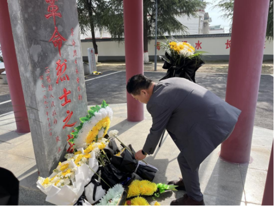 随后,全体人员向革命烈士默哀,依次敬献鲜花,集体三鞠躬,以最诚挚的方式缅怀先烈、寄托哀思。