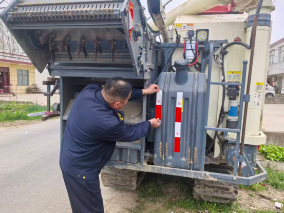 眼下正值春耕备耕关键时节,农机作业和跨区转移日益频繁。4月8日,驻马店市正阳县农业机械技术中心工作人员走进正阳县域农机销售企业,在农户购买农机具的第一时间,为其免费粘贴高亮反光标识。这标志着正阳县2026年民生实事——农机安全“亮尾工程”全面启动实施。 在农机销售现场,工作人员一边细致地为新购置的拖拉机、联合收割机粘贴反光标识,一边向农机手讲解夜间行车安全注意事项。“以前觉得贴个反光条没啥用,今天听了讲解才知道,这小小一块标识,晚上能被几百米外的车灯照见,关键时刻真能保命。”刚刚购买了一台拖拉机的王有全感慨道。