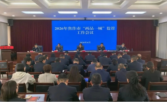 4月9日,焦作市市场监管局召开2026年全市“两品一械”监管工作会议。会议贯彻党的二十大和二十届历次全会精神,落实市委十二届九次全会及全省药品监管工作会议、全市市场监管工作暨党风廉政建设工作会议部署、全市医保基金管理突出问题专项整治工作推进会精神,总结2025年“两品一械”监管工作,安排部署2026年重点工作任务。