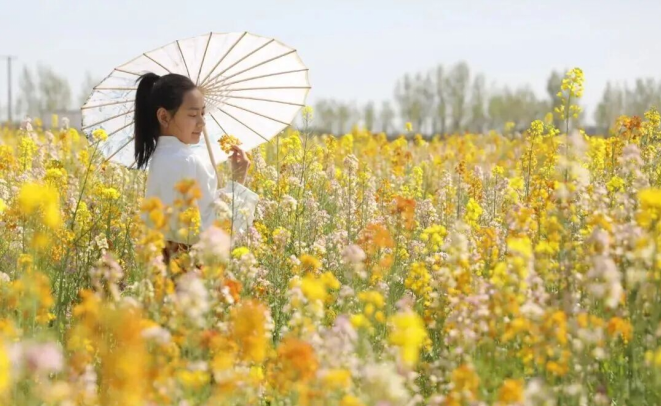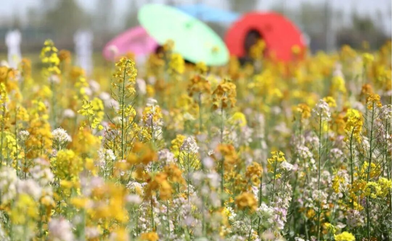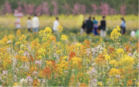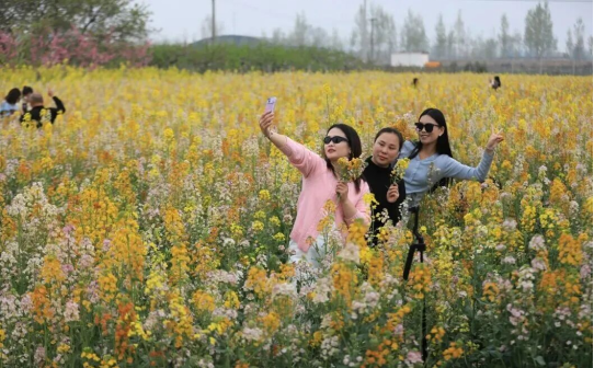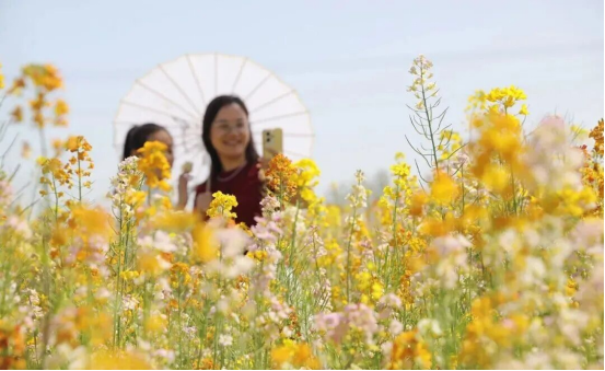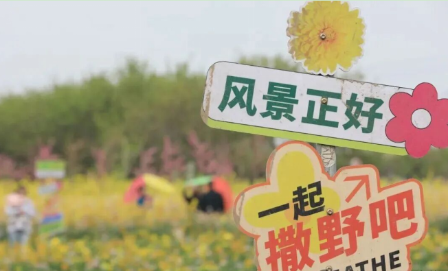 色彩斑斓的花田更是成为市民的“春日打卡地”。五彩缤纷的油菜花铺成花海,在阳光下肆意绽放,绘就出春日最鲜活的底色。人们徜徉在花田间,或结伴漫步,或打卡拍照,欢声笑语回荡在花海之中。有的市民举着手机记录花海盛景,有的三五好友同框合影,还有的在“风景正好 一起撒野吧”创意标牌前定格笑脸,尽情享受春日的松弛与惬意。