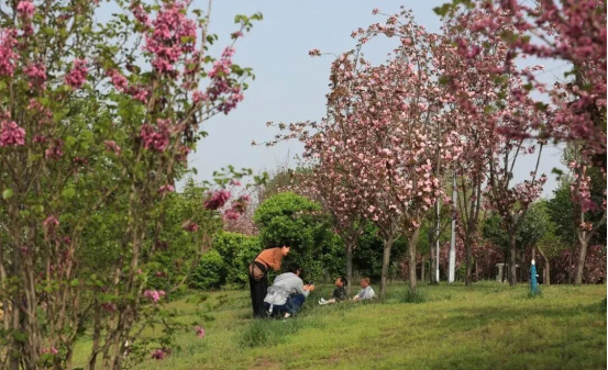 漫步园内,春日的浪漫扑面而来。盛放的海棠、樱花缀满枝头,粉云般的花团在枝头摇曳,花香随风漫溢。不少市民驻足花下,用镜头定格春日的绚烂,在花影间记录下与春天的美好相遇。
