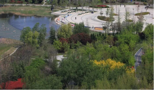镜头中,温县子夏公园宛如一幅春日画卷。澄澈的湖水蜿蜒流转,倒映着岸边抽芽的新柳与葱郁的林木,粉白的花树点缀其间,造型别致的拱桥横跨水面,为春日增添了灵动韵味。从高空俯瞰,绿意层层铺展,水色天光相映,尽显春日的生机与秀美。