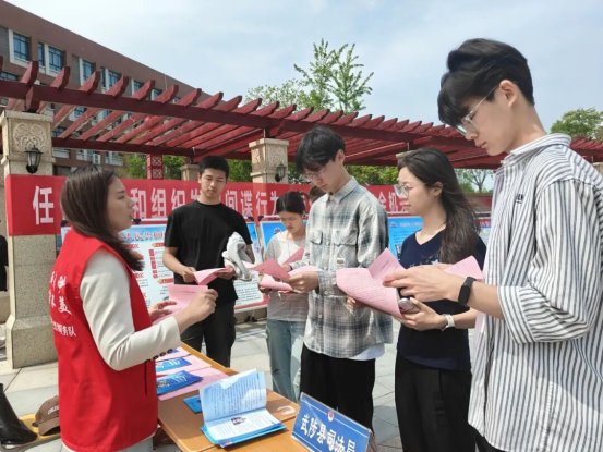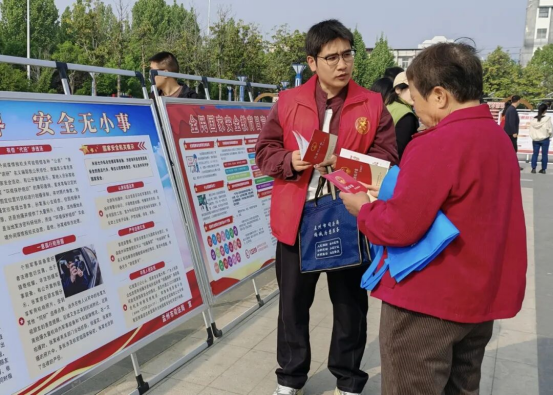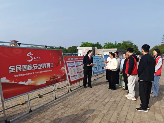 面向领导干部,将国家安全法律法规纳入党委(党组)理论学习中心组学习和政府常务会议会前学法,提升其运用法治手段防范化解安全风险的能力;面向青少年,依托法治副校长、普法志愿者,深入中小学开展法治课、互动问答等活动,引导青少年树立正确国家安全观;面向企业职工,重点宣传商业秘密保护、数据安全等知识,助力企业筑牢经营安全防线;面向社区居民,聚焦电信诈骗、个人信息保护等热点,用通俗语言普及知识,破除“国家安全与普通人无关”的误区。此次系列宣传活动,共发放宣传资料2000余份,摆放展板13块,接受群众咨询100余人次,覆盖群众3000余人。 武陟县司法局 4月15日,武陟县司法局在黄河交通学院开展全民国家安全教育日主题普法宣传活动,把国家安全法治知识精准送到青年学生身边,筑牢维护国家安全的青春防线。