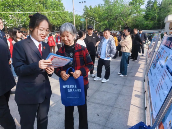 2026年是《中华人民共和国国家安全法》颁布施行11周年。4月15日全民国家安全教育日当天,解放区检察院组织干警在市人民公园门前开展普法宣传活动,通过设立专题展板、发放宣传手册、现场讲解等方式,向往来群众宣传国家安全和反邪教知识。干警们结合真实案例,用通俗易懂的语言深入浅出地讲解了如何运用法律武器维护国家安全,以及发现可疑情况如何举报等内容,引导群众树立“国家安全,人人有责”的观念。