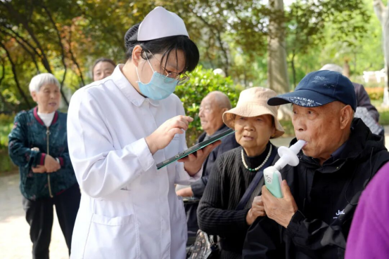 活动现场秩序井然、气氛热烈,前来咨询的市民络绎不绝。呼吸与危重症医学科二区的医护人员为市民免费提供血糖、血压检测等服务。专家围绕慢阻肺的发病原因、筛查方式、诊断要点与日常管理进行细致讲解,用通俗语言化解专业知识,引导居民科学对待、定期复查、规范就医。义诊现场还为市民提供免费肺功能专项检查,医护人员规范操作专业医疗设备,耐心指导市民配合完成检查并及时对结果进行分析解读,针对性提供个性化健康指导和诊疗建议。
