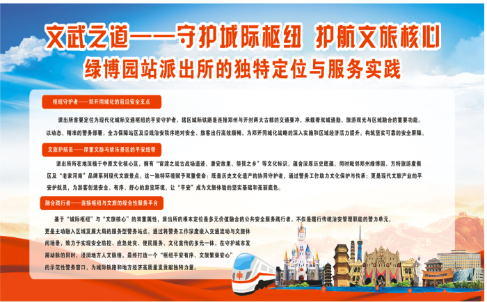 扎根热土:一个派出所的“双重坐标” 帮任老先生找回手机这件事,在绿博园站派出所的日常工作中或许只是一件“分内小事”,但如果把它放在更宽阔的视野里看,却折射出这个基层派出所独特的定位与追求。 绿博园站派出所地处中牟——一座千年古县,既有官渡古战场的智谋底蕴,又有潘安故里的文雅气息,箜篌之乡的悠远韵律也源自这里。与此同时,辖区还紧邻郑州绿博园、方特旅游度假区以及“老家河南”系列文旅地标,是郑开同城化交通大动脉上的重要节点。 这样一片“枢纽+文旅”双重属性的土地,赋予了派出所不一样的使命:既要当好城际铁路的平安守护者,确保旅客出行安全有序;又要当好地方文脉与文旅产业的平安护航员,让文化在流动中被更好地看见、传承。
