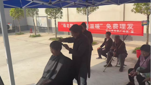 | 鹤壁市山城区宝山街道东扒厂社区老年人口基数大,独居、留守及高龄行动不便老人占比较高,日常出行理发不便,成为老年群体的生活难题。东扒厂社区坚持从民生小事抓起,积极谋划便民服务,常态化开展免费理发志愿服务,将每月15日固定为辖区老人免费上门理发,把实事办到群众心坎上。