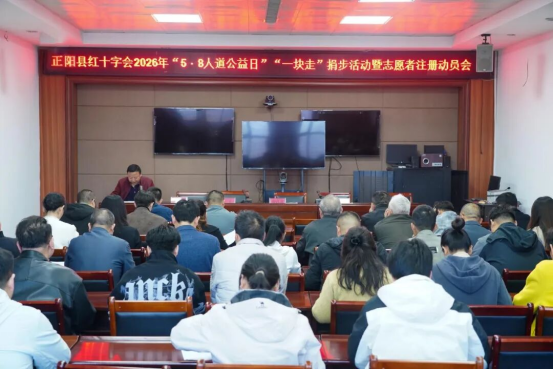 4月24日,驻马店市正阳县红十字会召开2026年“5·8人道公益日”“一块走”捐步活动暨志愿者注册动员会。