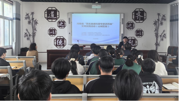 | 为深入推进全民阅读活动走深走实,丰富青少年阅读形式,营造爱读书、读好书、善读书的浓厚社会氛围,近日,由省科协、省文明办主办,省科普中心、市科协承办,山城区科协、区教体局、区实验中学协办的河南省“百名首席科普专家进百县”文明实践活动(山城区站)在鹤壁市山城区实验中学顺利开展。本次活动将科普宣讲与阅读推广有机结合,作为全民阅读活动周特色主题活动,特邀郑州航空工业管理学院航空发动机学院科学与研究生培养办公室主任耿直老师,为100余名师生带来一场别开生面的科普阅读分享课。