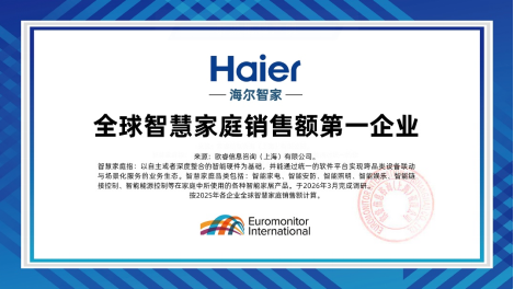 就在今年3月10日,世界权威市场研究机构欧睿国际数据显示,海尔智家成全球智慧家庭销售额第一企业。这是海尔智家在智慧住居赛道取得的又一新成果。