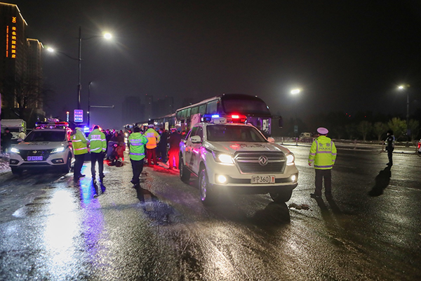 连日来,河南遭遇持续低温雨雪冰冻等恶劣天气。12月14日,受冰雪天气影响,周口高铁站全线停运,郑州滞留周口高铁乘客226名,无法返回。当地政府组织5辆大巴车转运滞留乘客,河南高速交警寒夜警车压速带道,接力护航滞留乘客安全到达郑州。